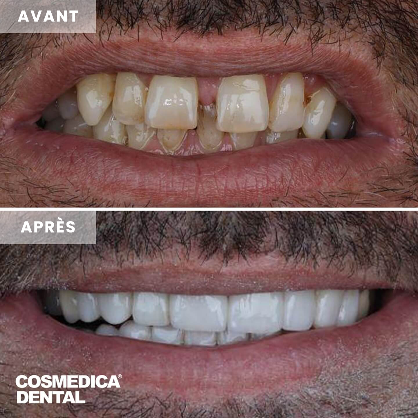 Chez Cosmedica Dental, nous offrons des transformations exceptionnelles à tous ceux qui recherchent des soins dentaires de qualité supérieure. Découvrez la différence que des techniques avancées et une expertise bienveillante peuvent apporter à votre sourire.